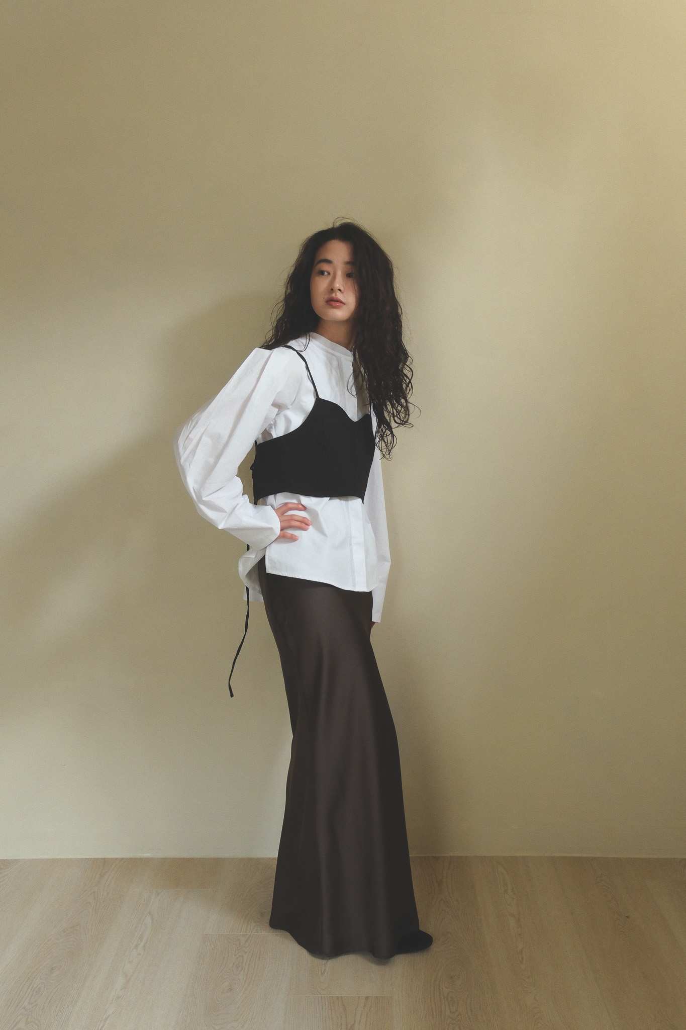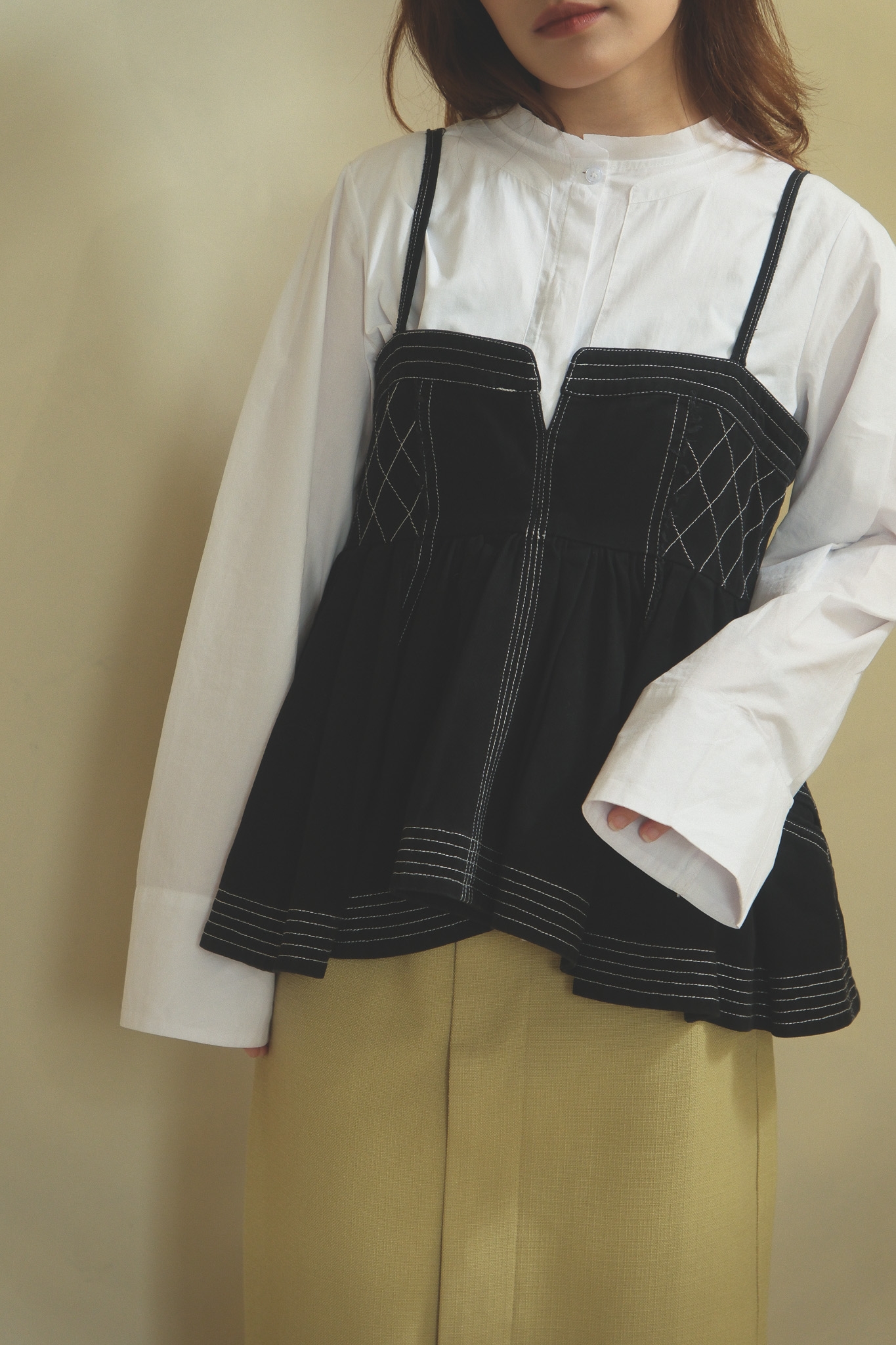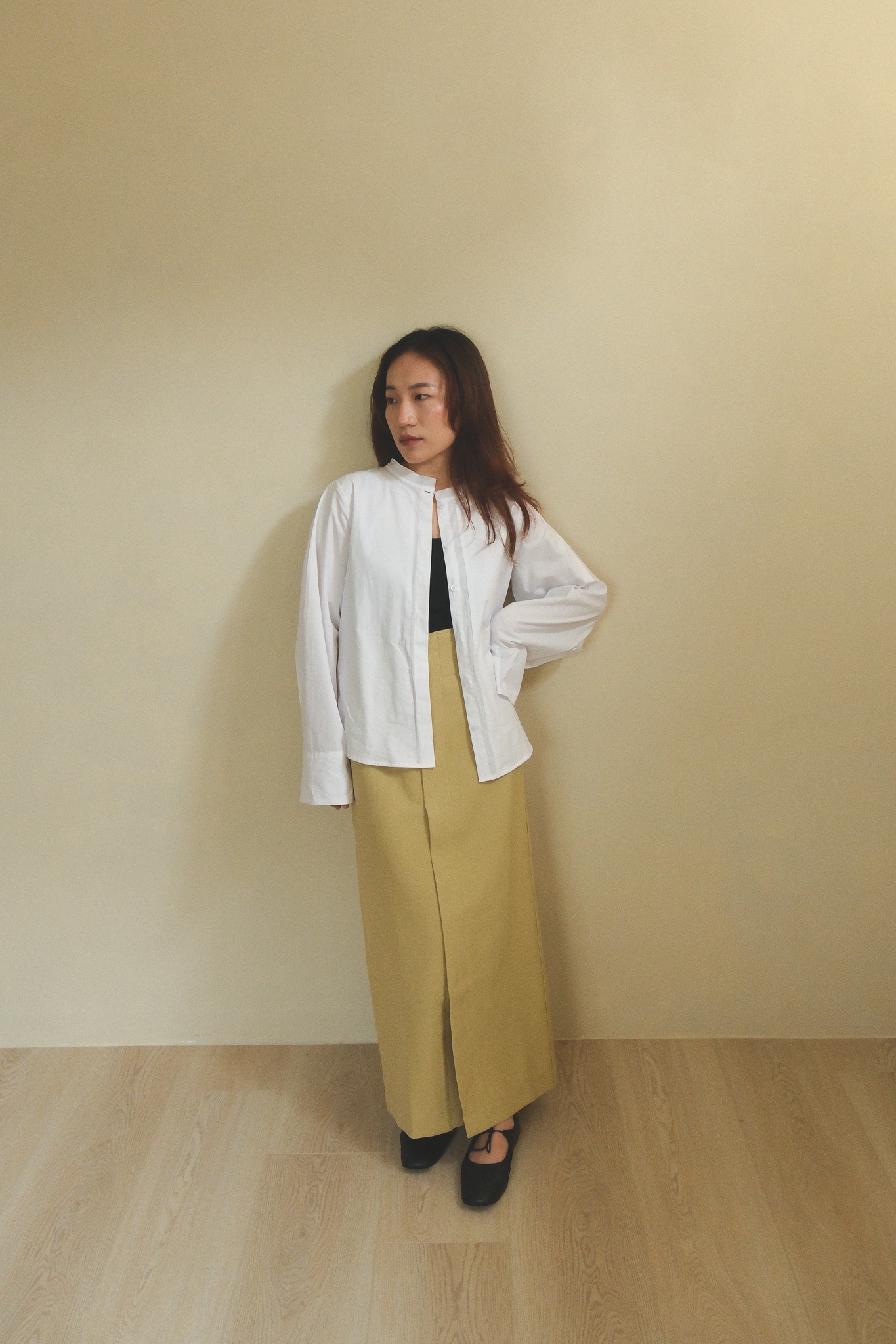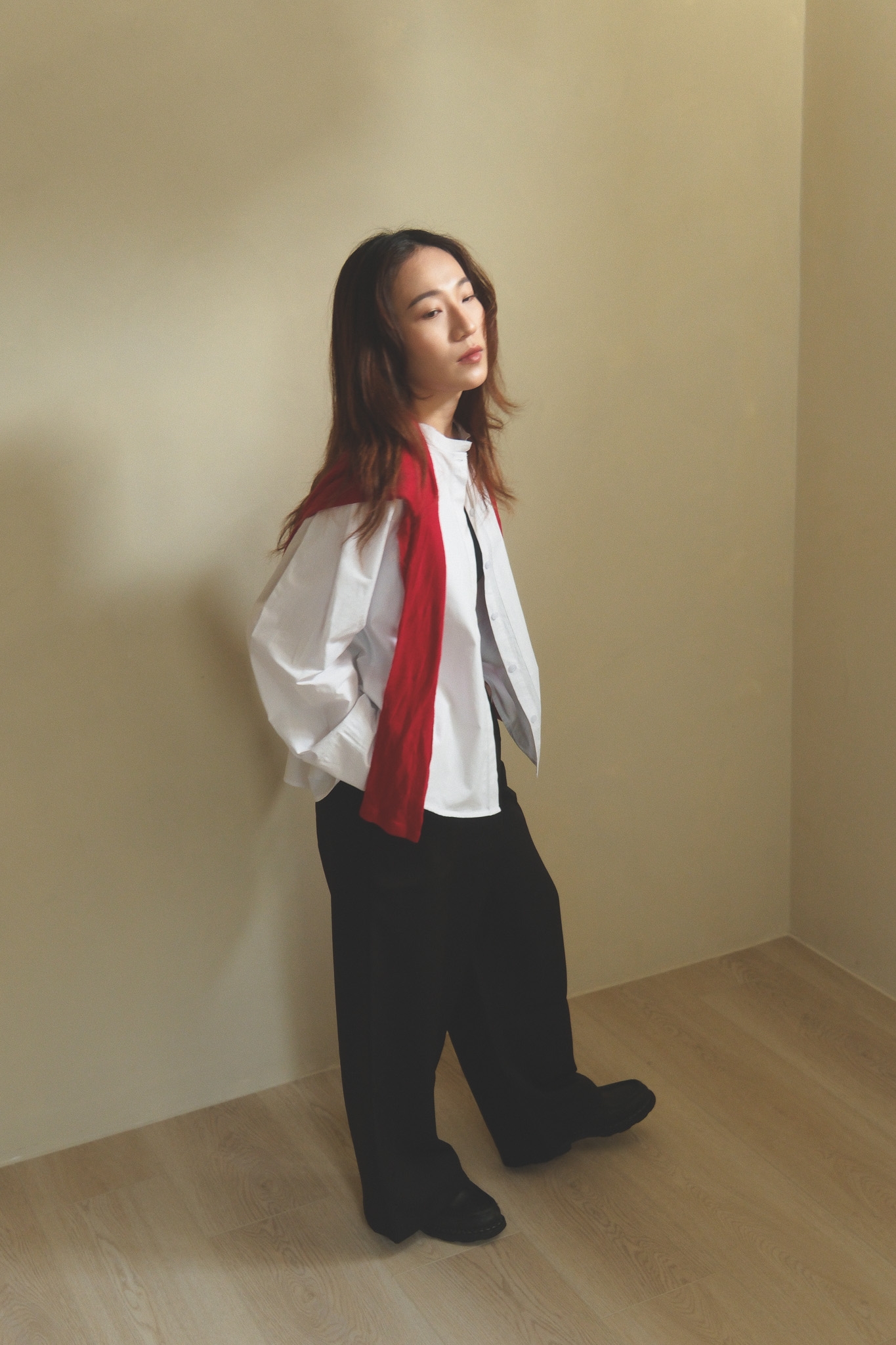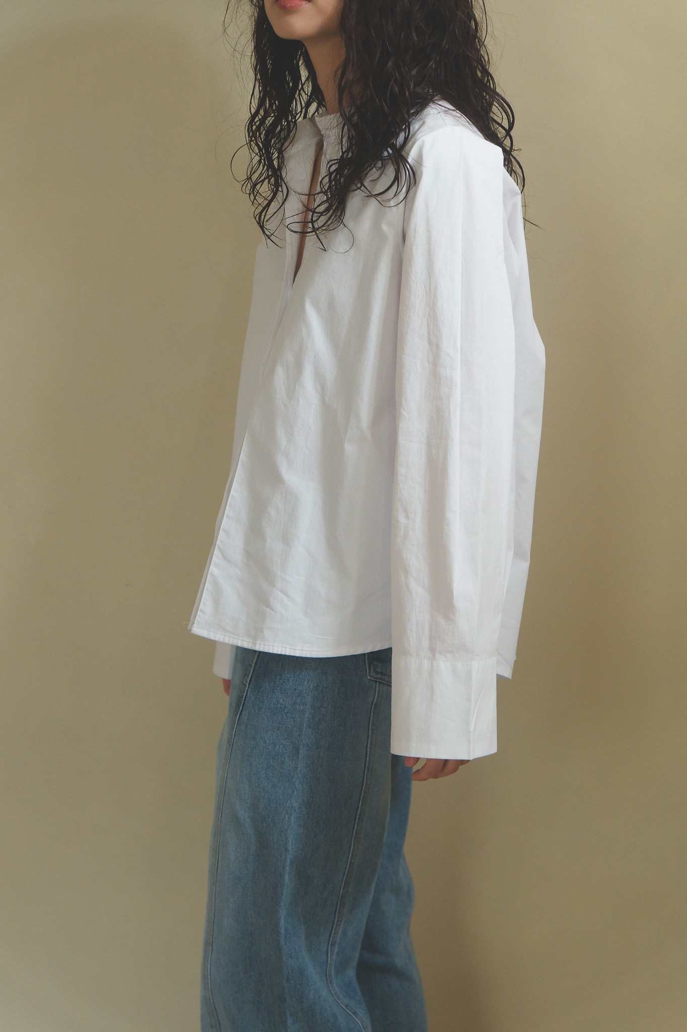 以簡潔俐落的白襯衫為基底,領口做了更輕盈的線條處理,少了制式襯衫的拘謹感,多了一點柔和、安靜卻很有態度的味道。 袖身保留了適度的空氣感,穿起來不會過於貼身,輪廓自然立體,看起來精神不呆板~ 正面乾淨、好搭,背面則用立體摺線帶出份量與層次,讓白襯衫不只是基本款,而是一件從前面看到側面、再到轉身背影都很耐看的單品。 尤其怕看起來很厚的女生,這件的剪裁能讓整體看起來俐落又輕盈! 單穿時清爽俐落,搭牛仔褲會是很輕鬆、不隨便,搭配寬褲、長裙,或拿來做層次穿搭,也都能穿出更有造型感的氣質。