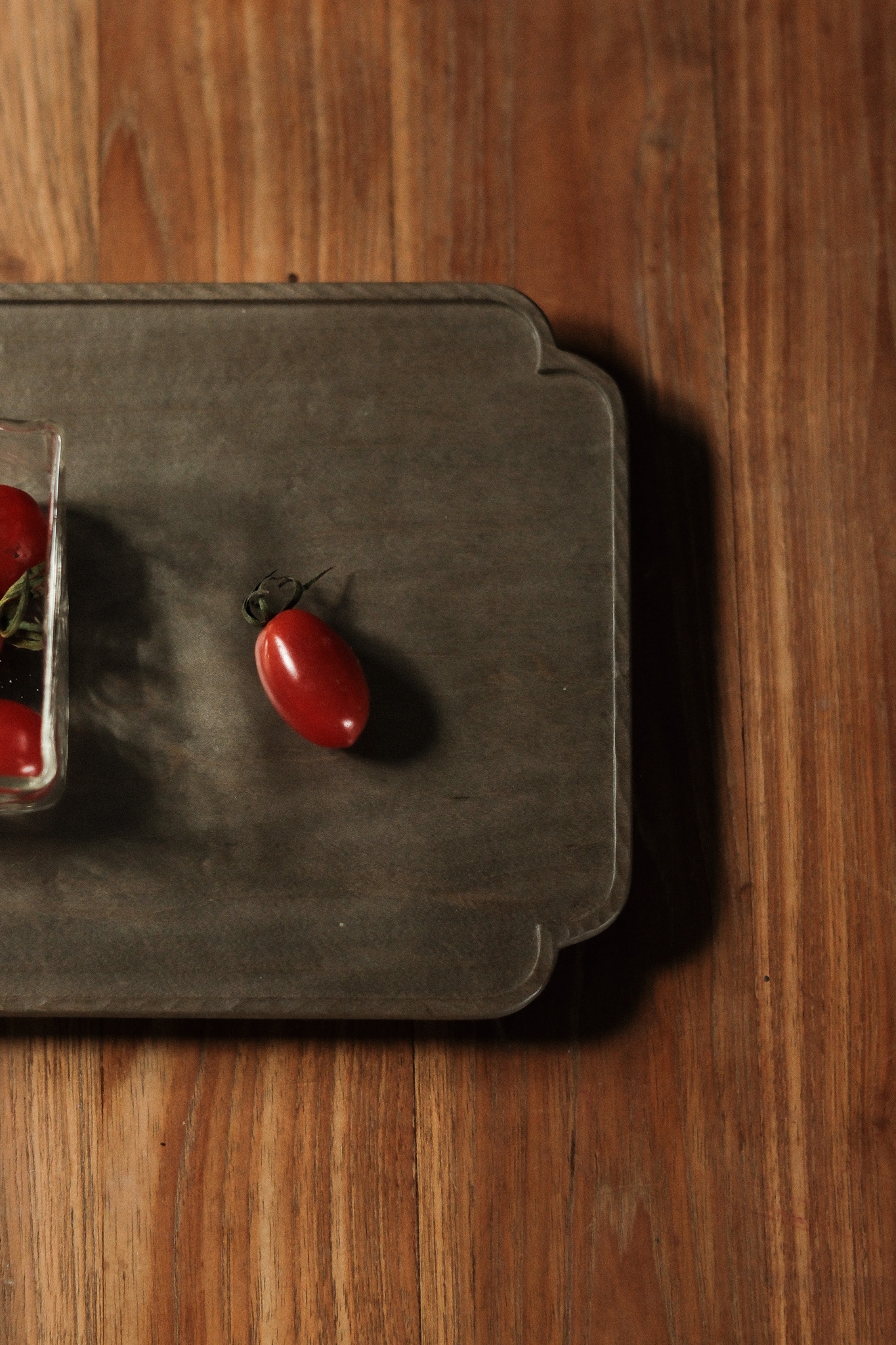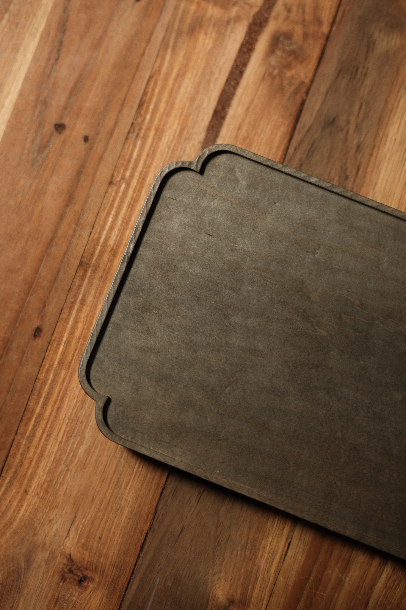 關於楓木鐵染 *由於楓木本身的特性,會有斑駁不均的呈現,且因光線角度與木紋方向不同,每一件看起來的色澤都會有所變化。 這款托盤的造型我非常喜歡,尤其平常有在做甜點的時候,把甜點放在上面再加上一杯熱茶,整個畫面非常的『賞心悅目』 他在不同的光線下也會有不同的木紋反射
