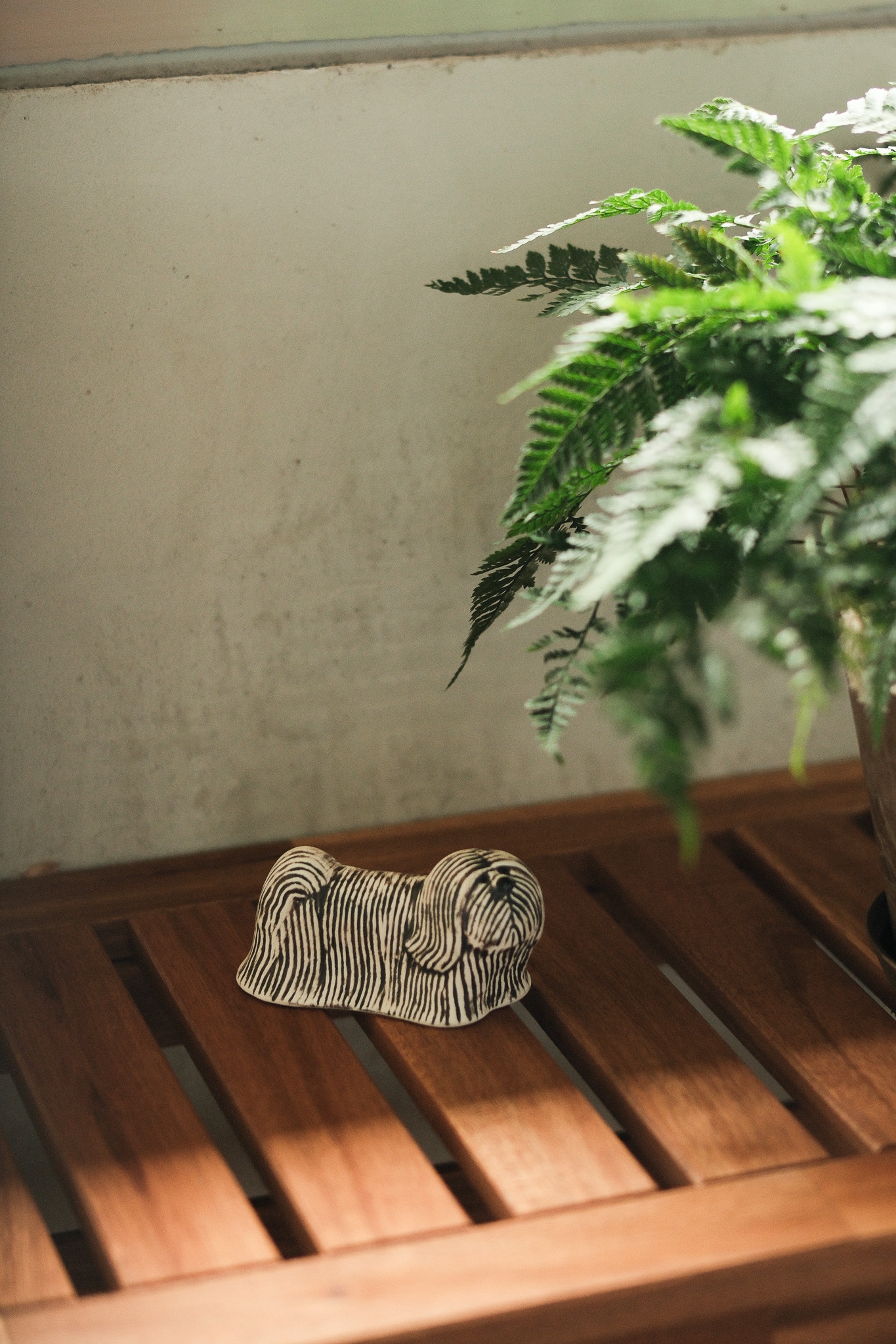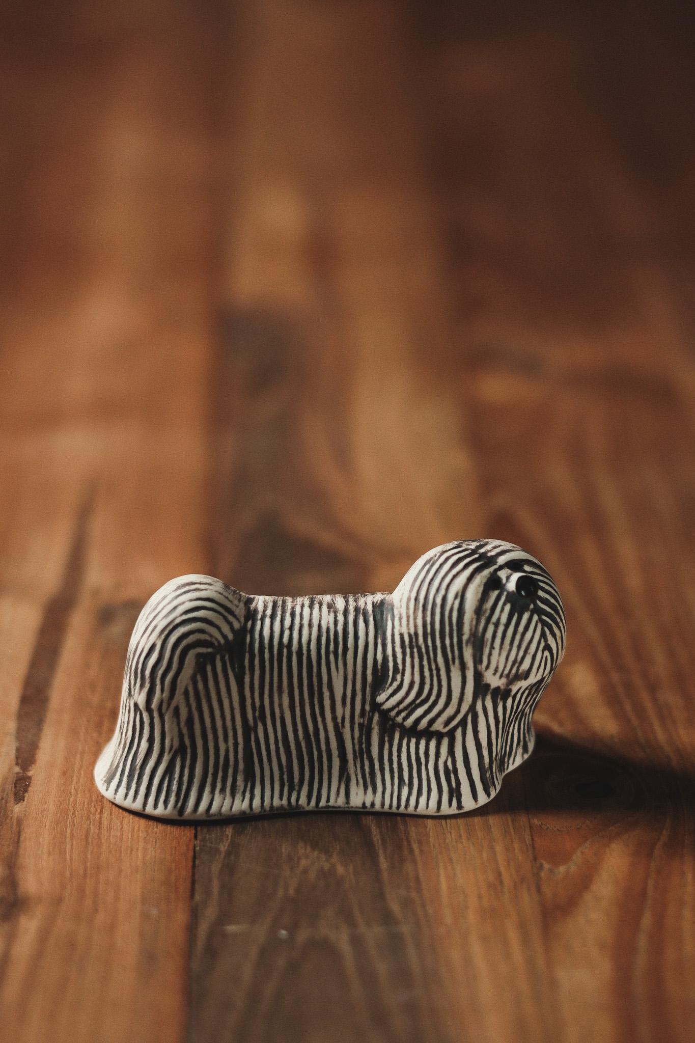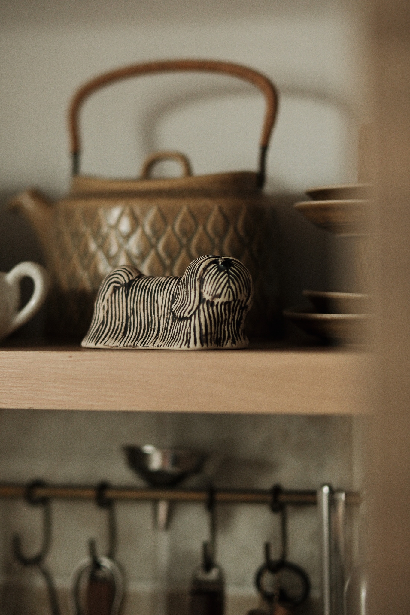 斯凱㹴,是一件帶有北歐幽默感與溫度的小型陶偶。圓潤簡潔的輪廓,搭配長長垂落般的毛流表現,讓整體看起來安靜、可愛,卻又很耐看。