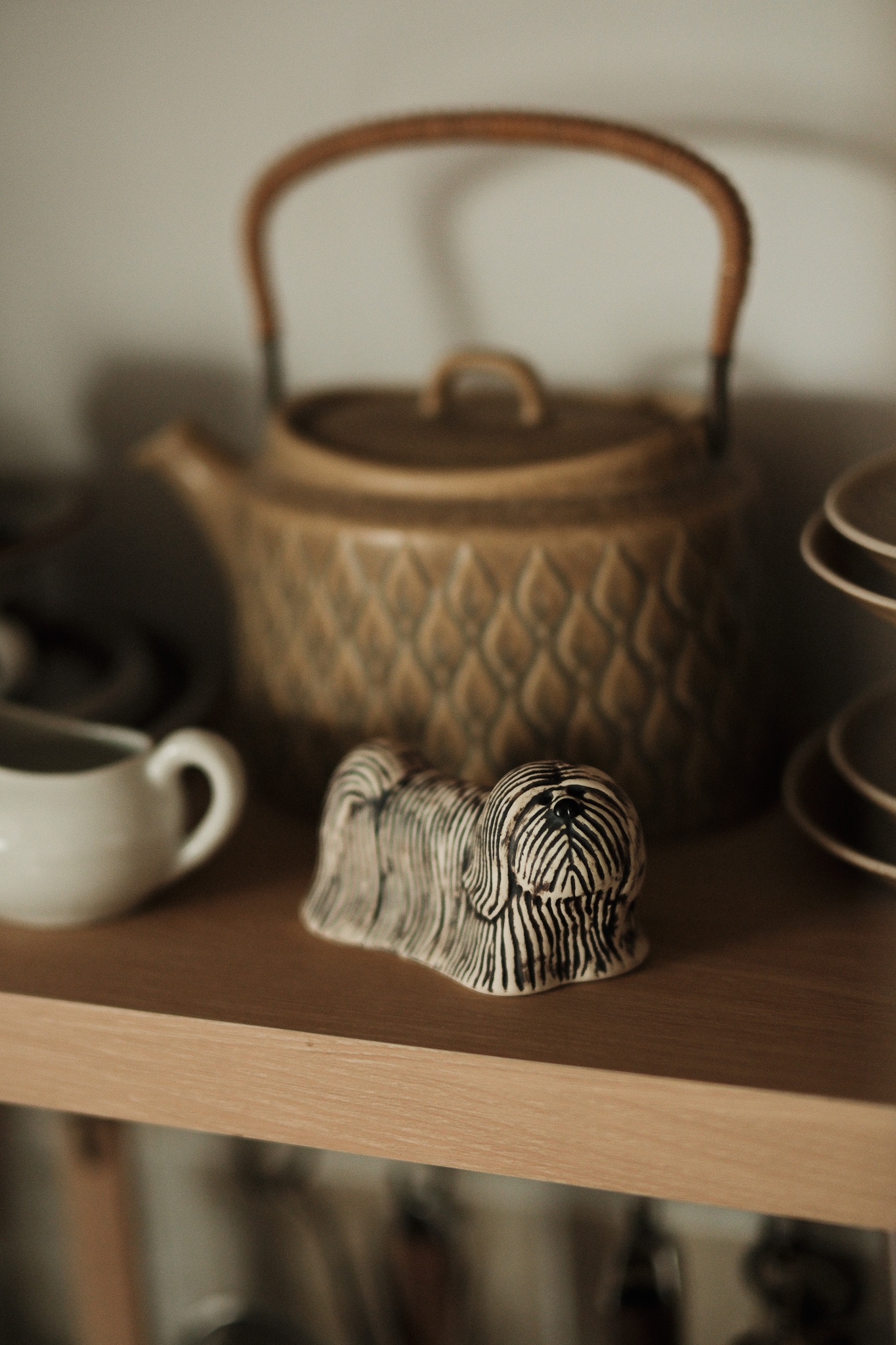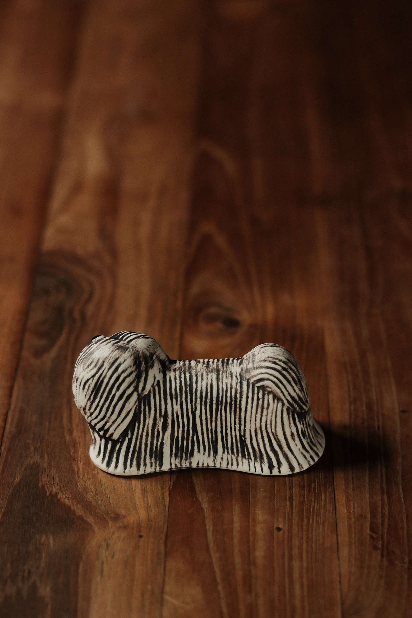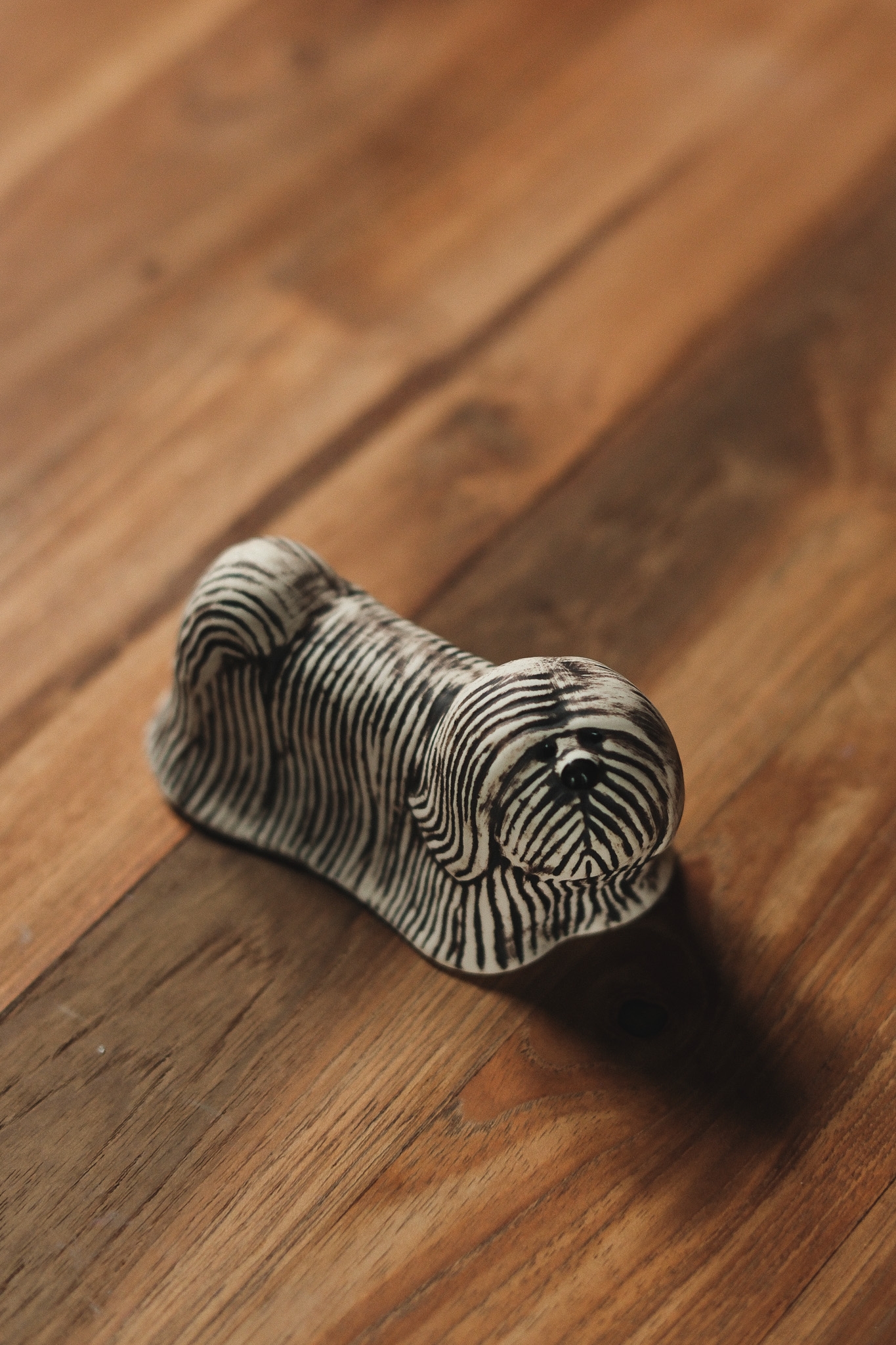 斯凱㹴,是一件帶有北歐幽默感與溫度的小型陶偶。圓潤簡潔的輪廓,搭配長長垂落般的毛流表現,讓整體看起來安靜、可愛,卻又很耐看。