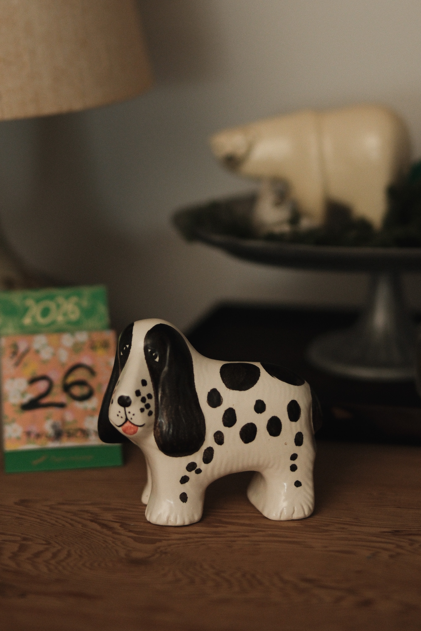 它不是那種過度寫實的狗狗造型,而是 Lisa Larson 很擅長的方式,用極簡而有表情的線條,把動物的性格留下來。擺在書桌、櫃上或器物旁,都會讓空間多一點溫柔又有個性的氣息